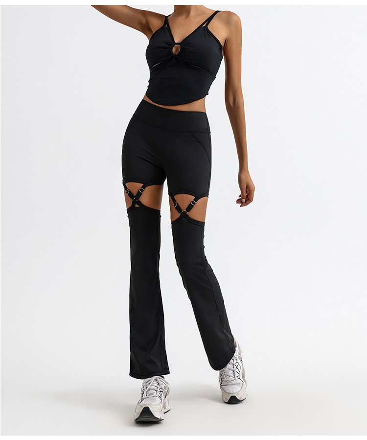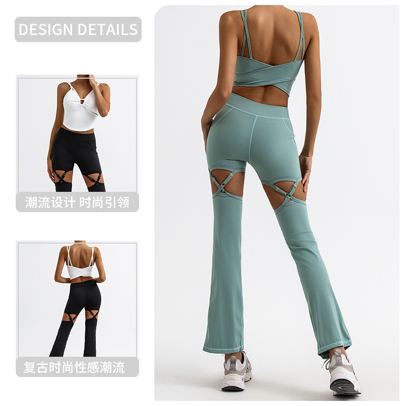 瑜伽套装女 美背镂空运动健身吊带高弹速干喇叭长裤
