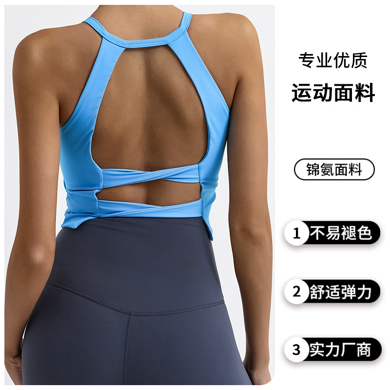 年春夏新款瑜伽背心女 高弹速干含胸垫美背运动健身训练吊带