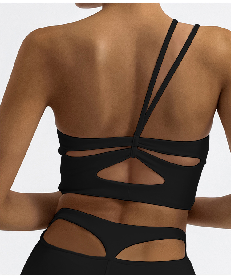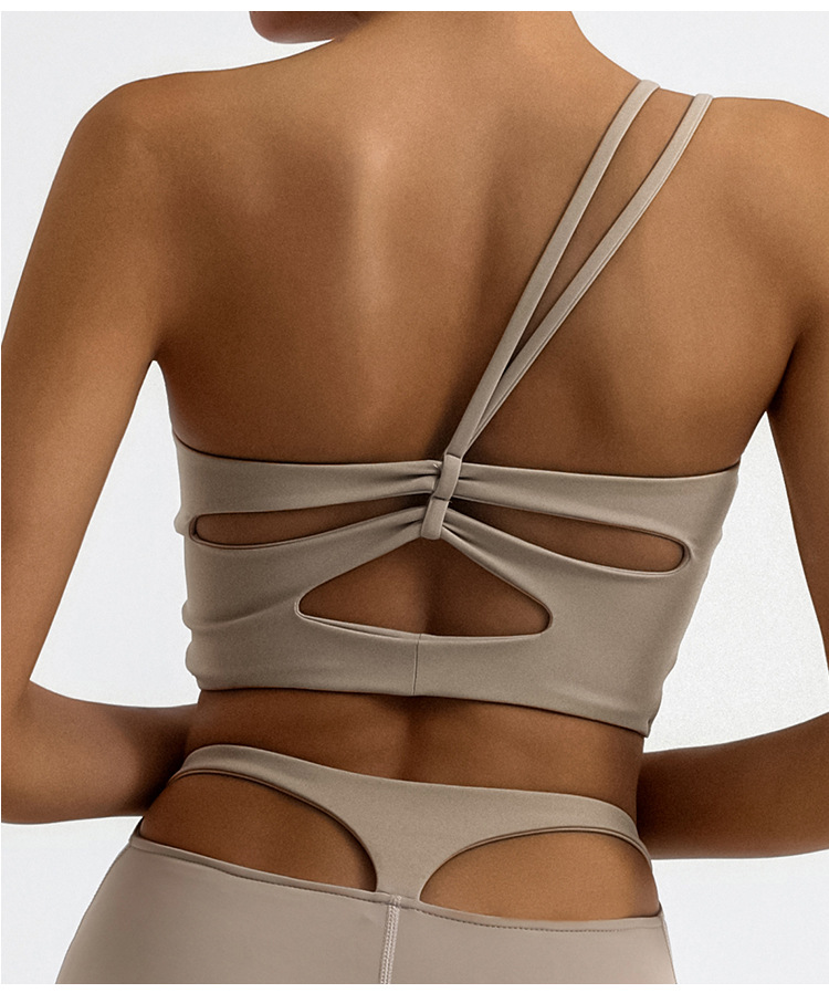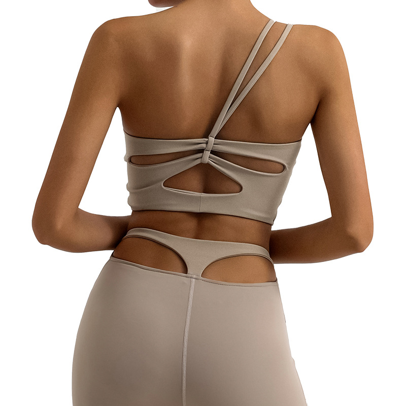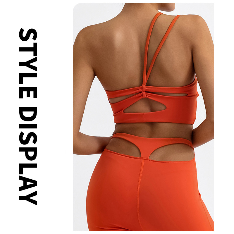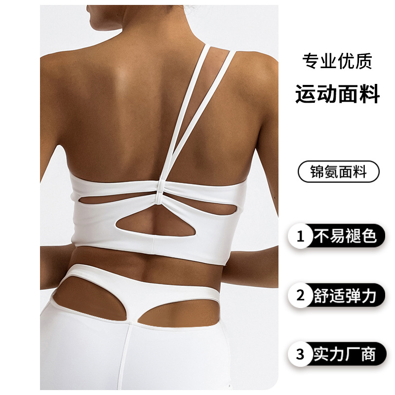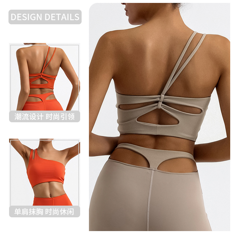 外贸跨境瑜伽背心女 美背交叉裸感含胸垫高弹速干吊带bra
