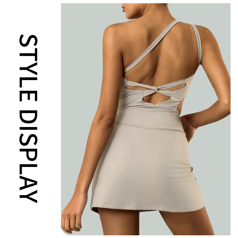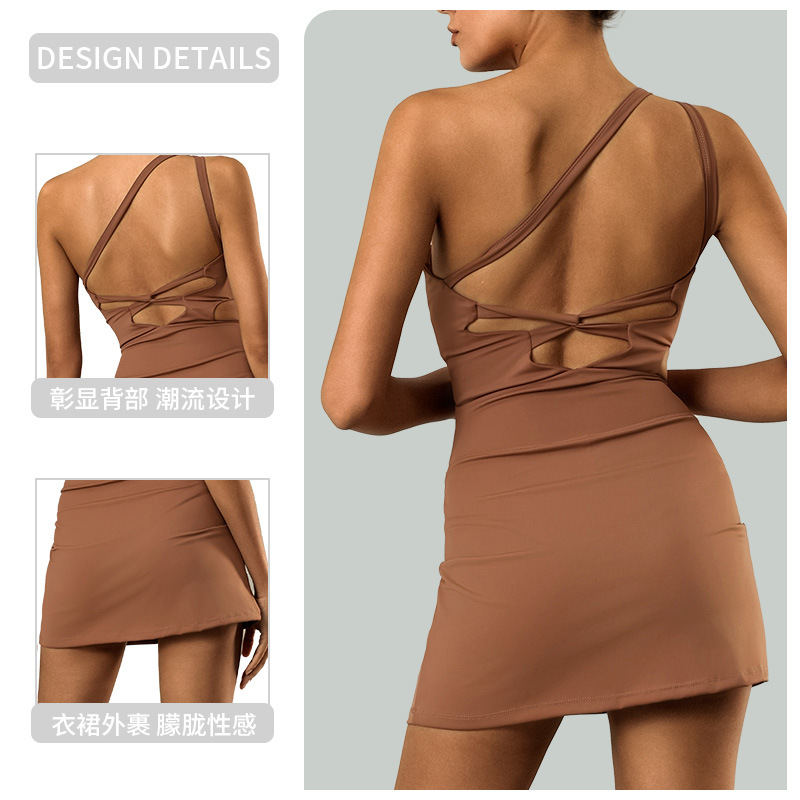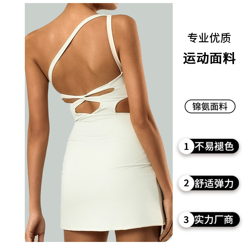 欧美外贸跨境裸感美背连体裙跑步运动健身瑜伽高弹速干网球裙