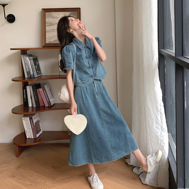 主推风牛仔套装法式女辣妹小个子美式裙子多巴胺牛仔裙收腰套装裙
