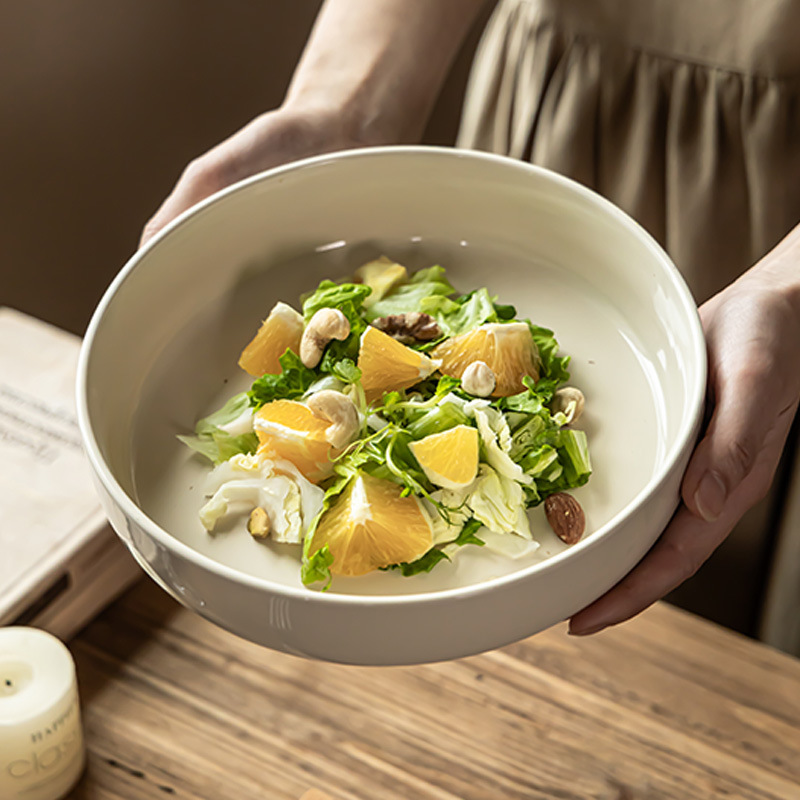 复古风纯色浅碗陶瓷碗大碗批发家用菜碗菜盘餐具批发碗简约沙拉碗