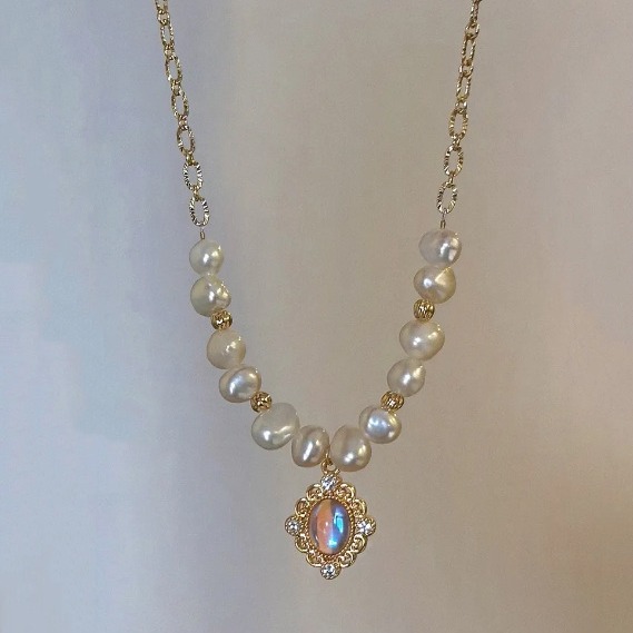 中世纪皇室风格月光石异形珍珠吊坠项链时尚轻奢高级感锁骨链颈链