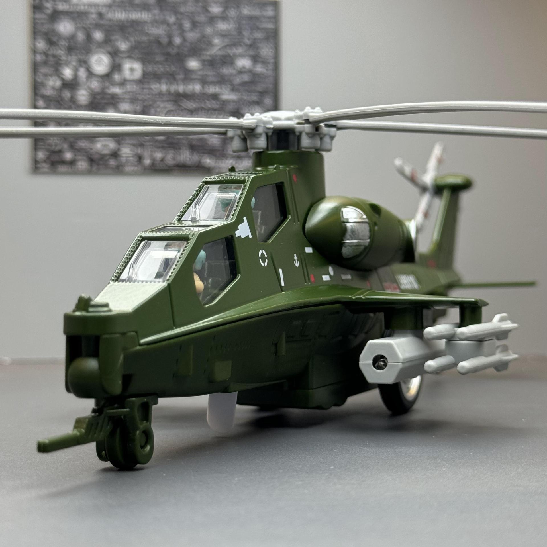 彩利信合金武直十合金战斗飞机模型带声光回力儿童玩具直升机摆件