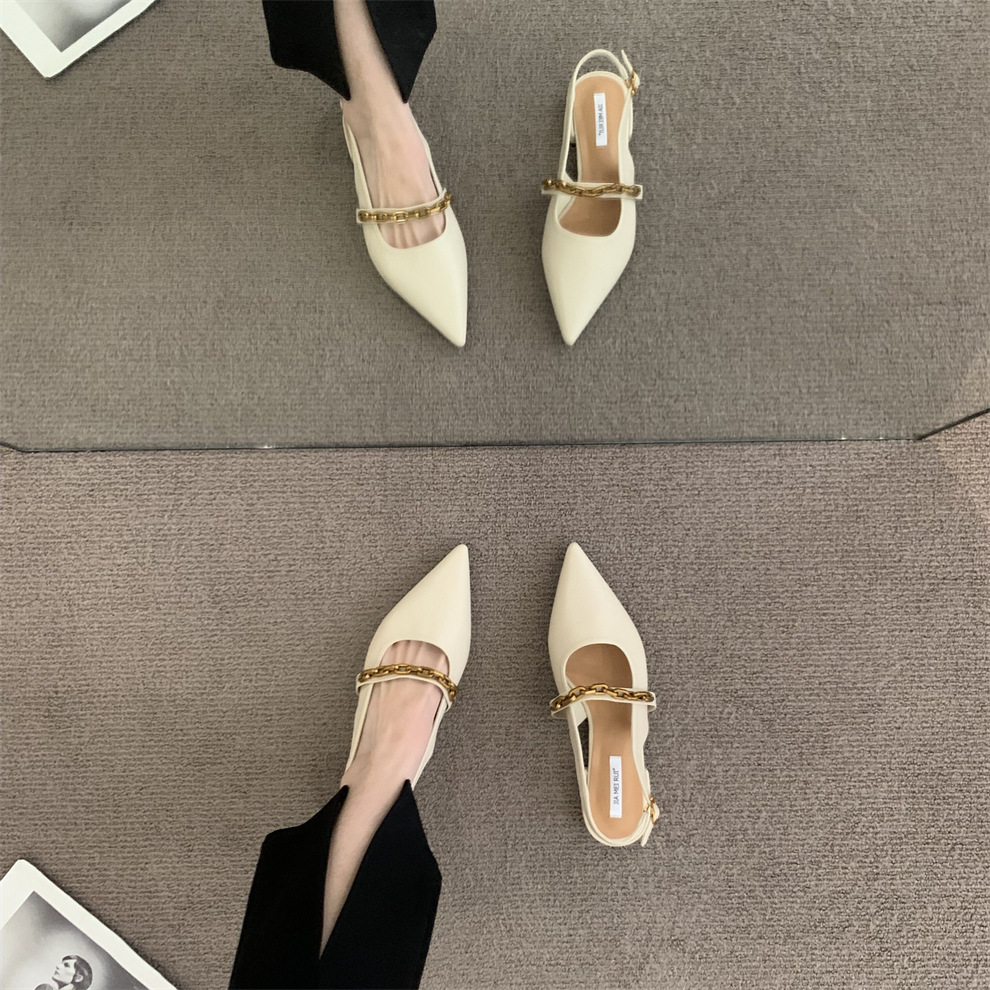设计感小众粗跟尖头凉鞋英伦低跟女鞋子法式鞋早秋新款韩版凉拖鞋