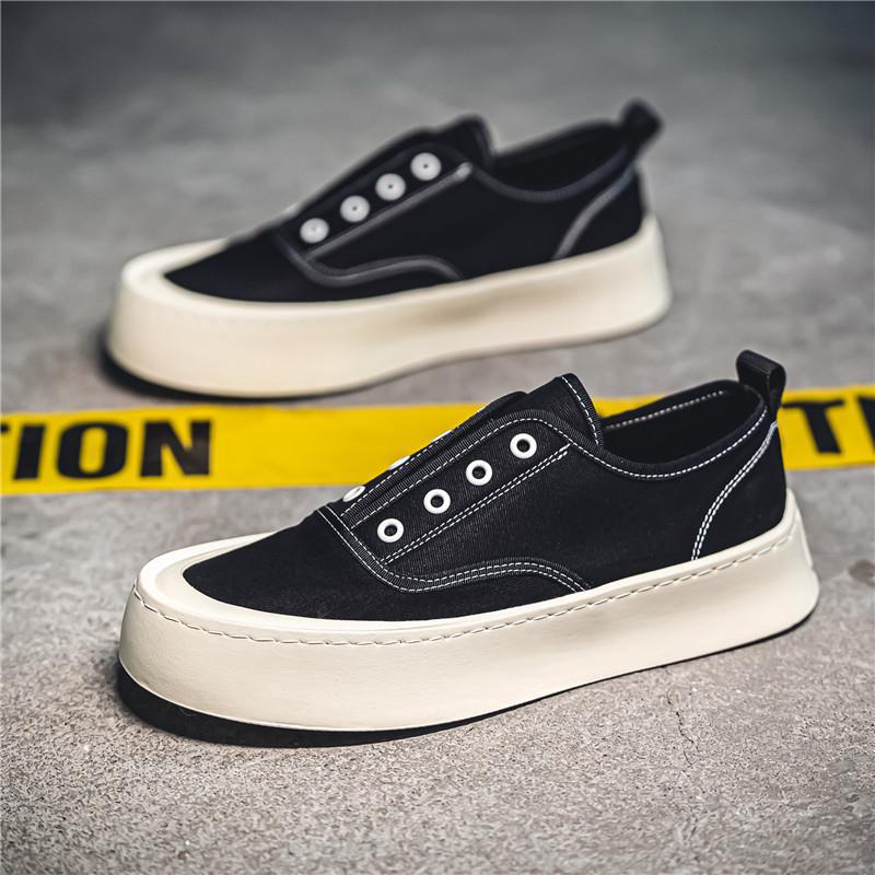 一脚蹬帆布鞋夏季新款厚底轻便懒人鞋透气百搭板鞋鞋子男潮休闲鞋
