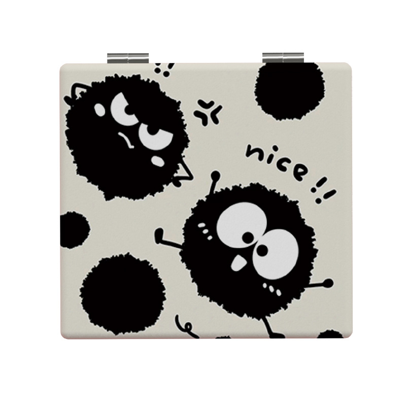 创意可爱个性煤球小镜子学生宿舍便携折叠双面镜迷你少女心补妆镜