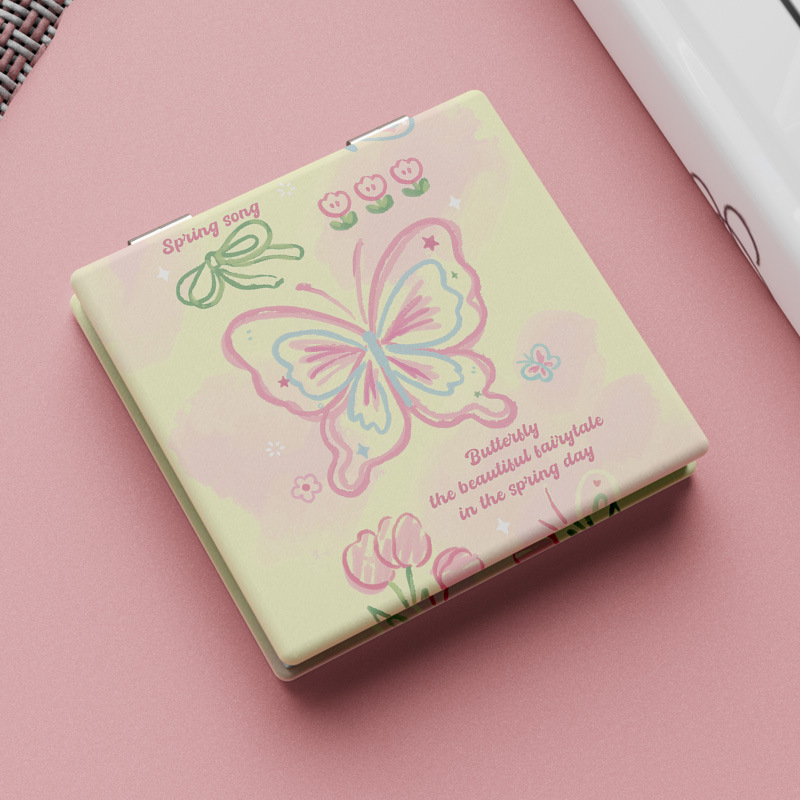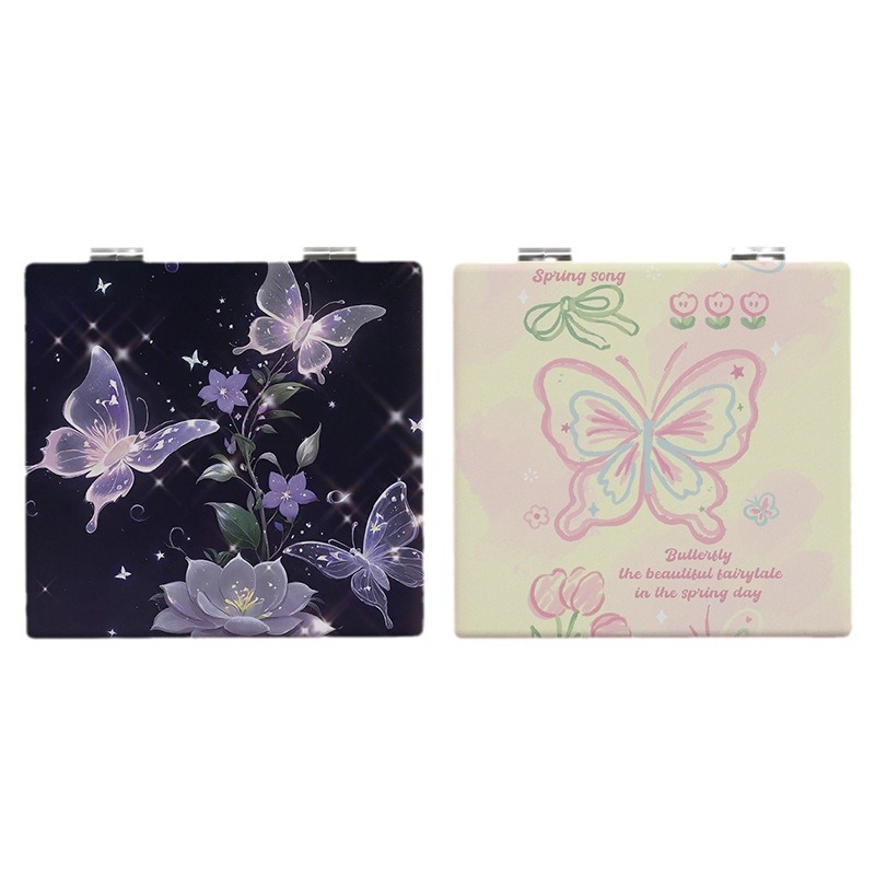 ins手绘蝴蝶随身便携镜小清新手持折叠迷你双面镜学生宿舍补妆镜