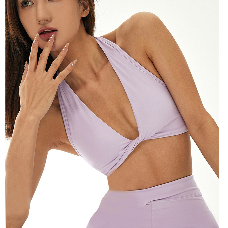 新款外贸瑜伽背心女挂脖速干亲肤运动健身上衣含胸垫