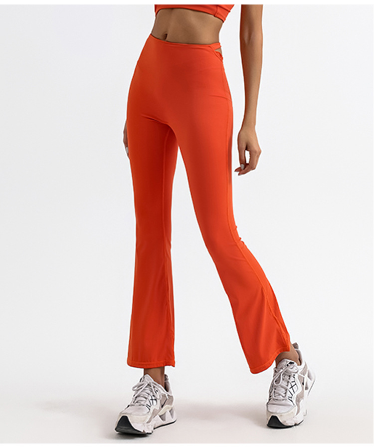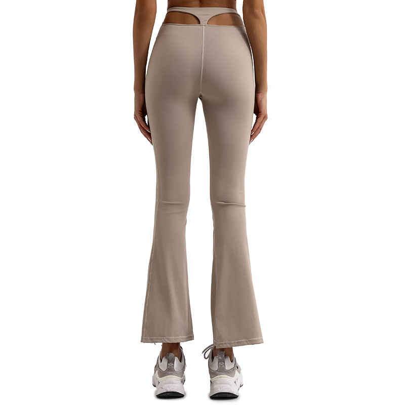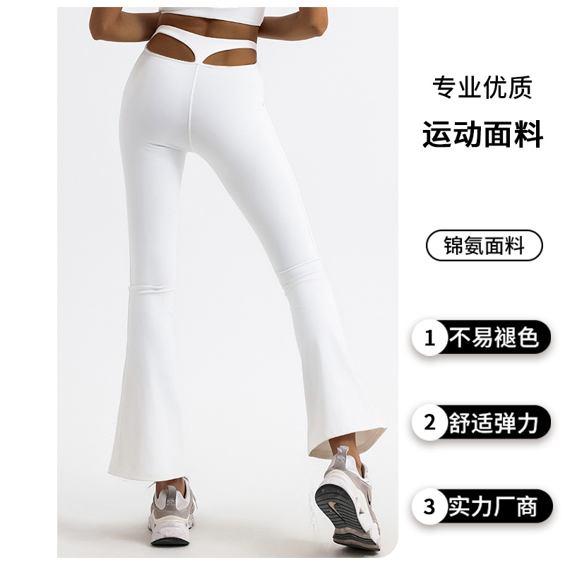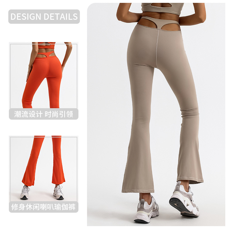 欧美外贸跨境裸感亲肤瑜伽长裤女高腰镂空运动健身跑步训练喇叭裤