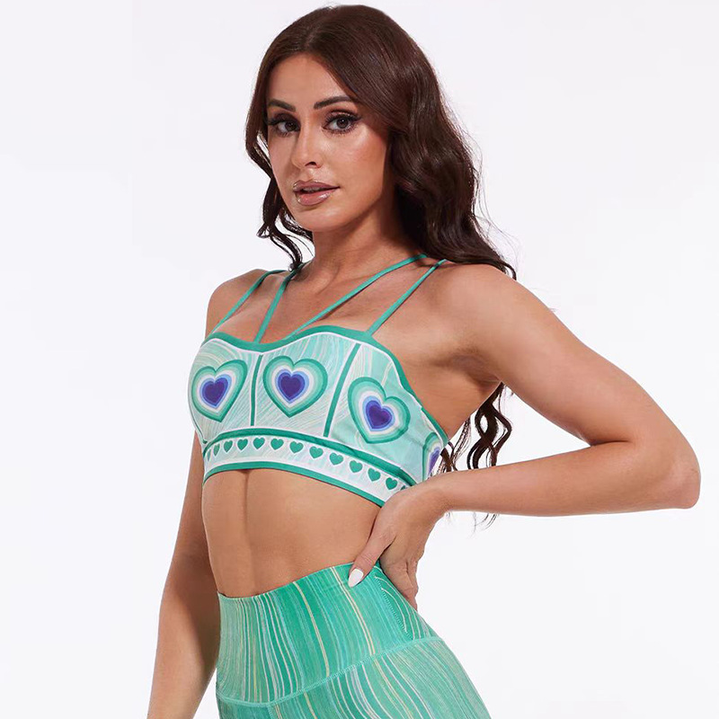 跨境欧美心桥之翼印花交叉吊带美背外穿健身瑜伽文胸运动内衣套装