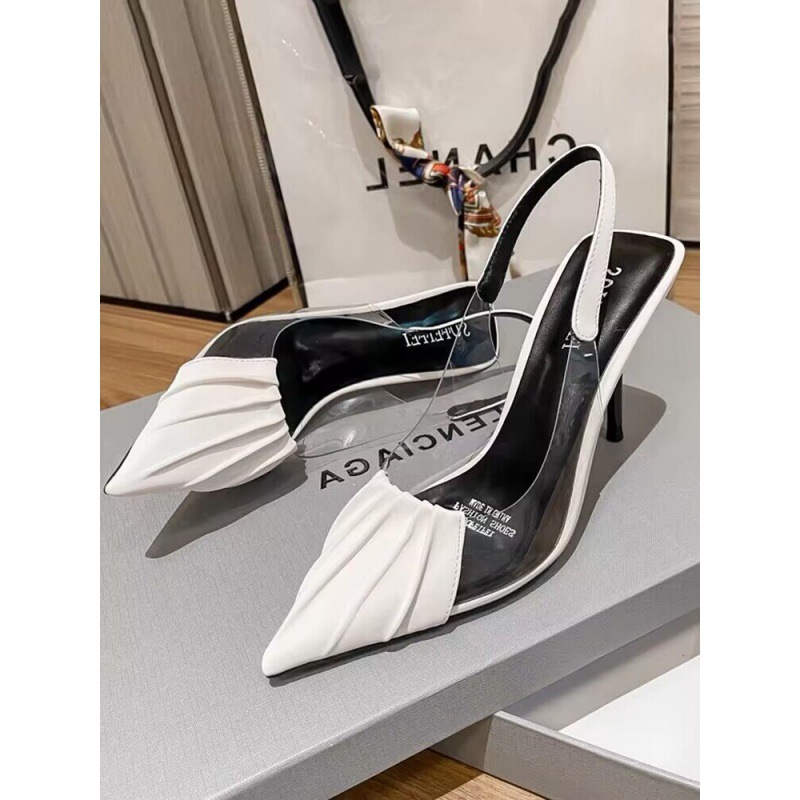 春夏季新款尖头细跟高跟鞋女包头后空褶皱PVC透明凉鞋