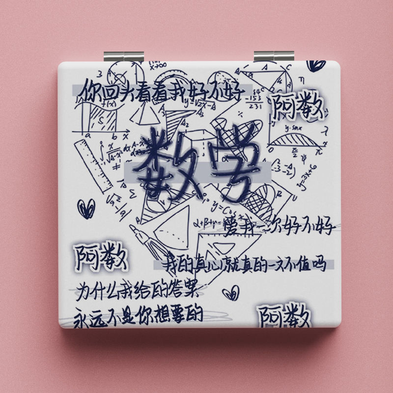 数学创意学生随身带小镜子折叠双面镜子少女心便捷补妆镜