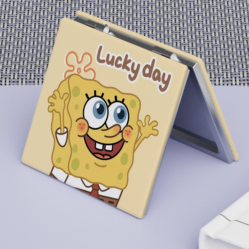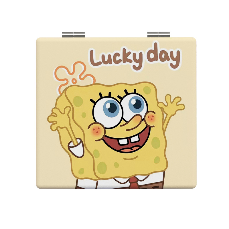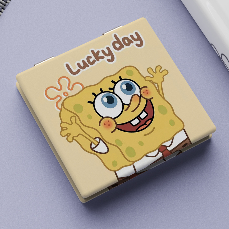 海绵宝宝PU皮便携化妆镜韩国少女学生双面可折叠补妆小镜子随身带