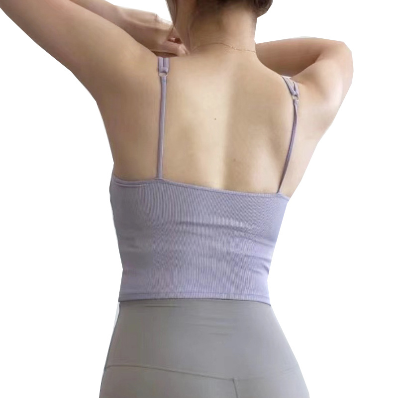韩版新款瑜伽吊带上衣女条纹坑条高弹速干含胸垫美背运动健身背心
