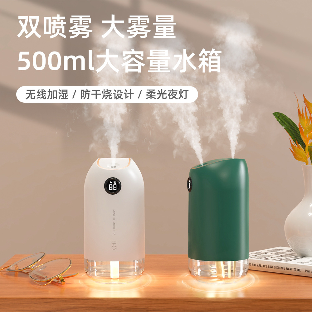 双孔喷雾加湿器小型家用静音便携式氛围灯桌面空气加湿器