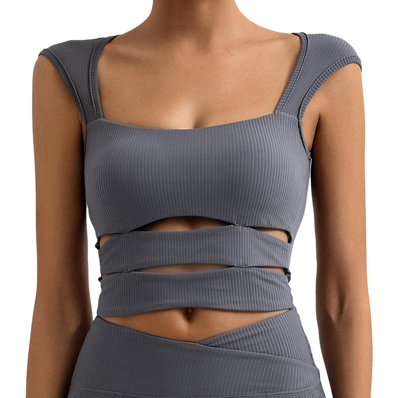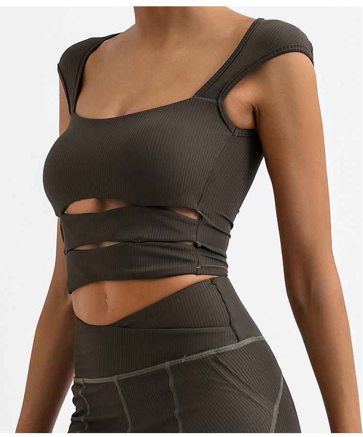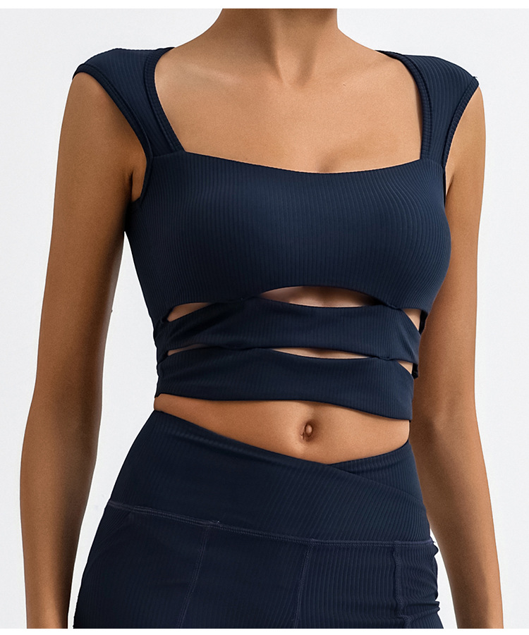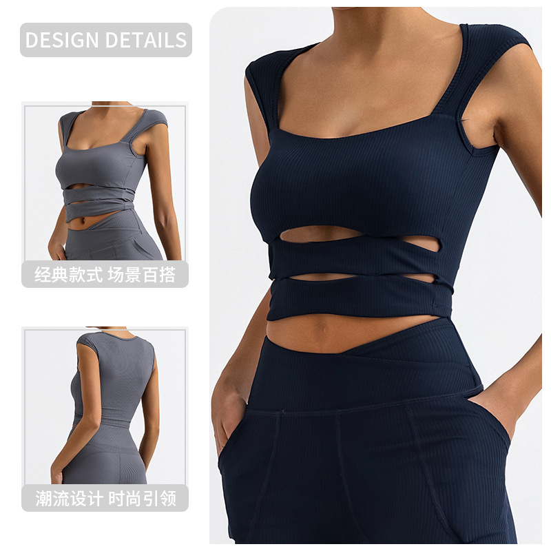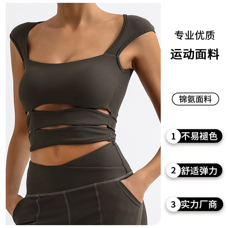 瑜伽T恤女 含胸垫条纹速干跑步运动健身训练上衣