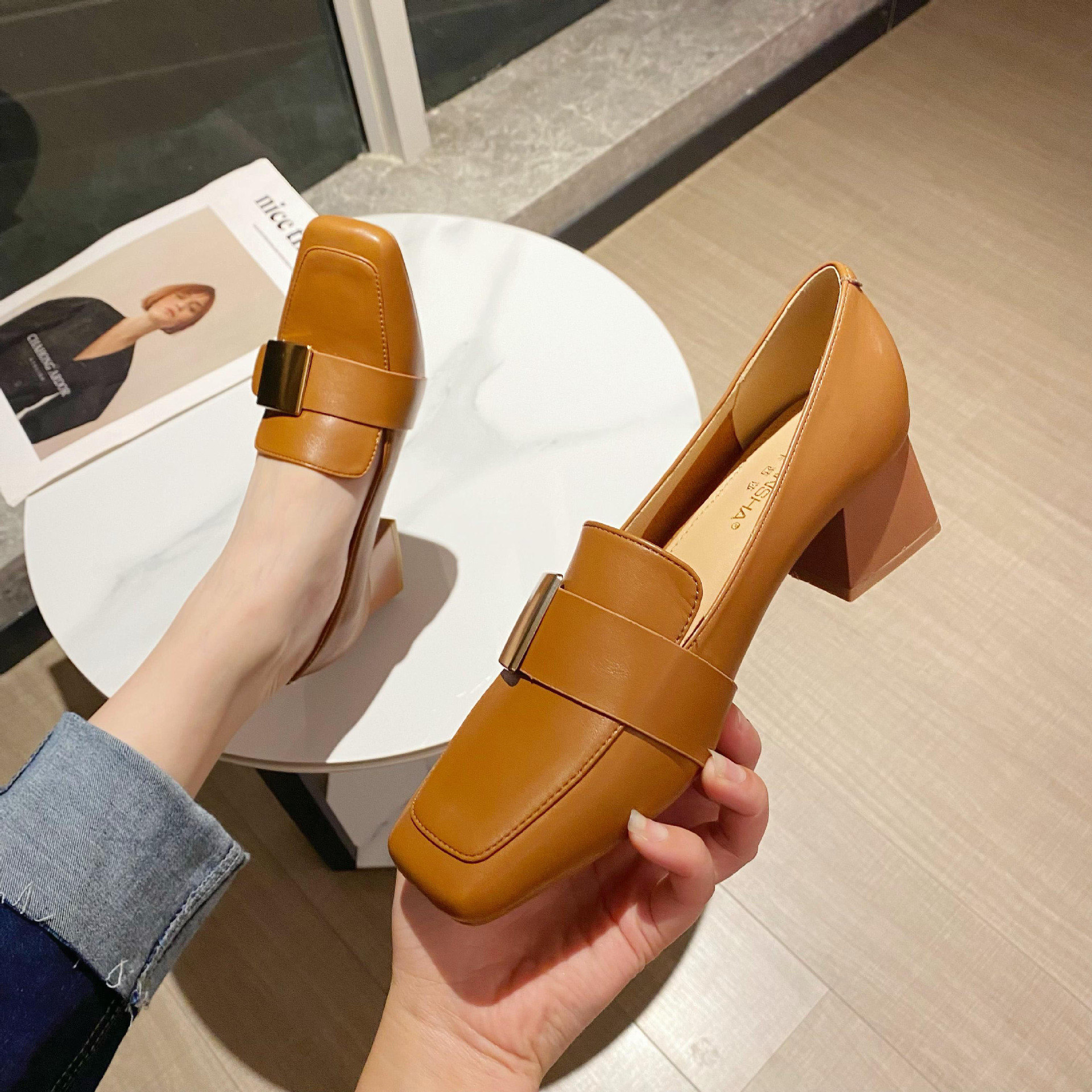 单鞋女新款韩版深口纯色中跟女鞋低帮时尚高跟鞋