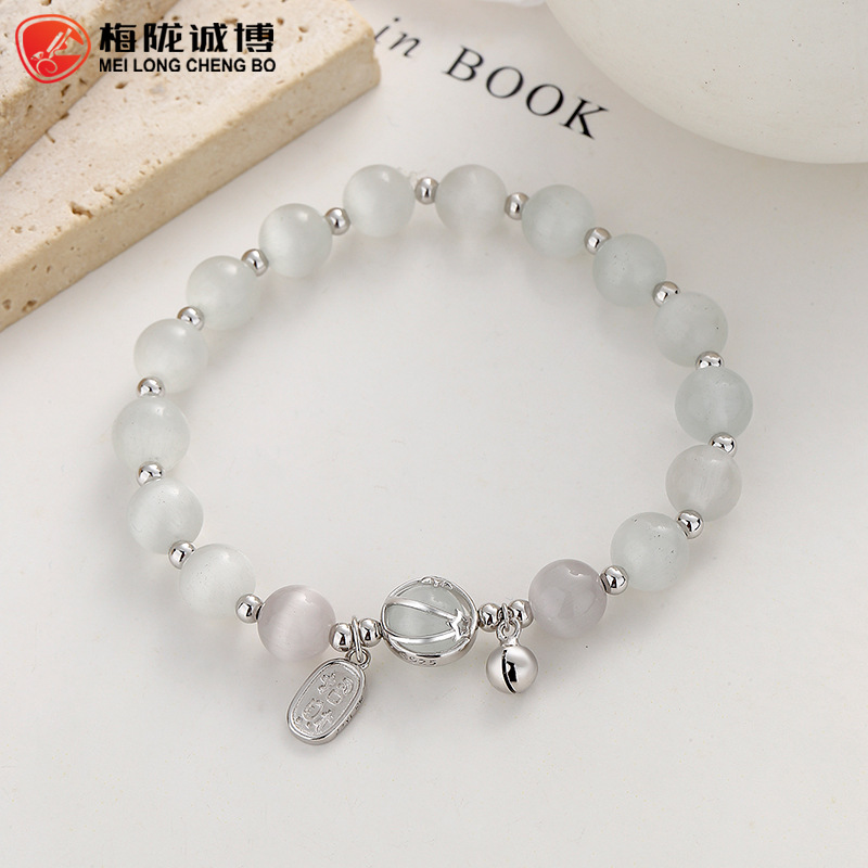925纯银猫眼石手链女新款个性设计感水晶铃铛手饰简约ins气质饰品
