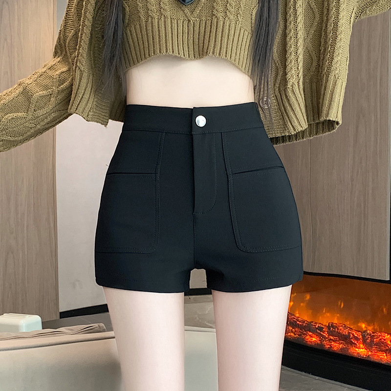 高腰黑色西装短裤女新款秋冬小个子打底显瘦外穿弹力辣妹靴裤