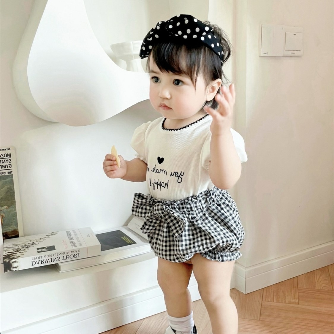 夏季女童套装宝宝网红洋气儿童个性潮牌韩版泡泡袖T恤格子花苞裤