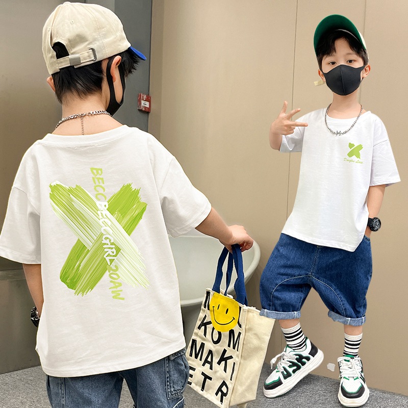 男童短袖纯棉休闲半袖t宽松帅气儿童t恤男孩夏季洋气中小童上衣潮