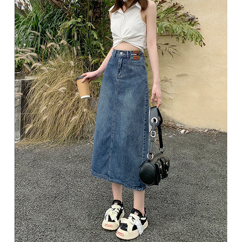 甜美韩版开叉牛仔半身裙女春夏新款高腰显瘦百搭中长款牛仔裙