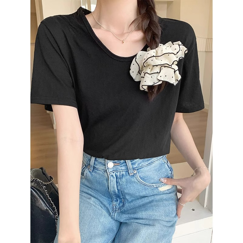 爆款来袭~字母刺绣磨毛短袖t恤女韩系春季新款休闲百搭打底衫上衣