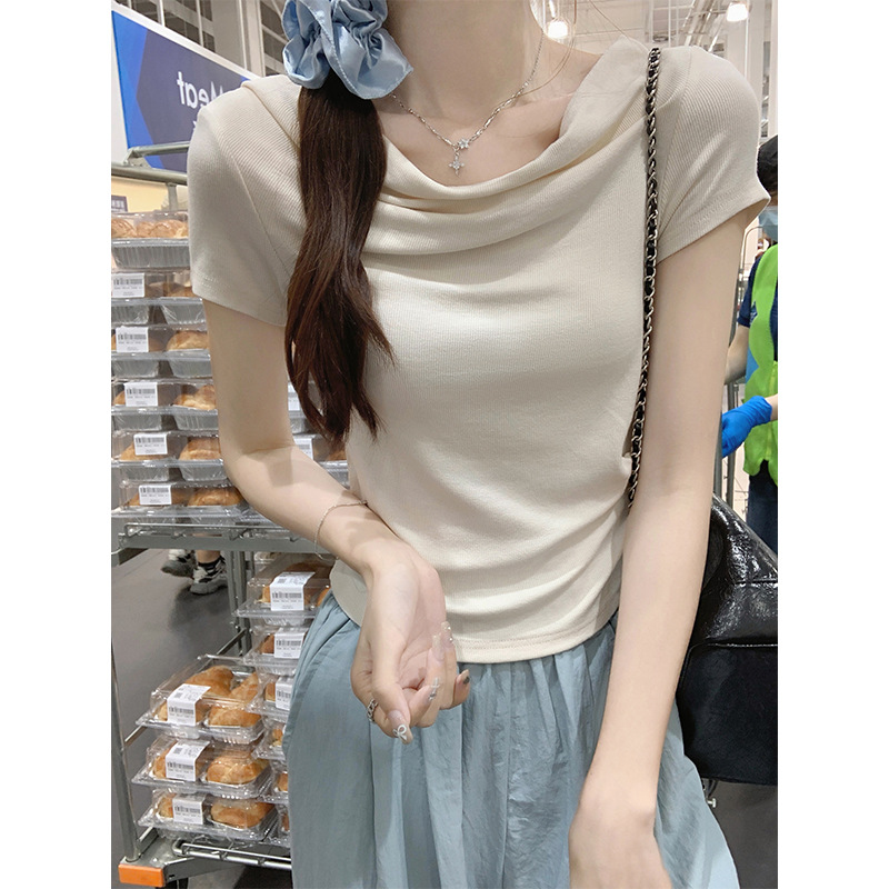纯欲风荡领短袖T恤女夏季新款时尚气质百搭修身显瘦短款上衣