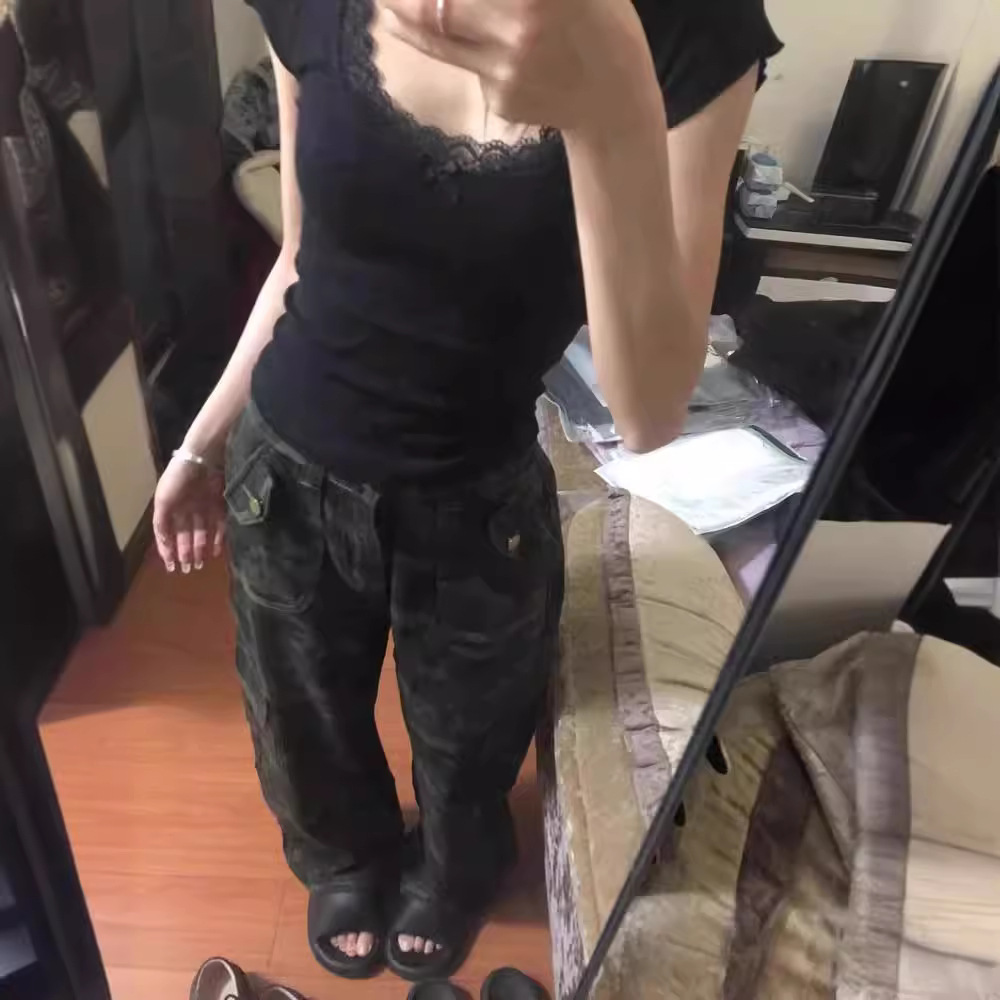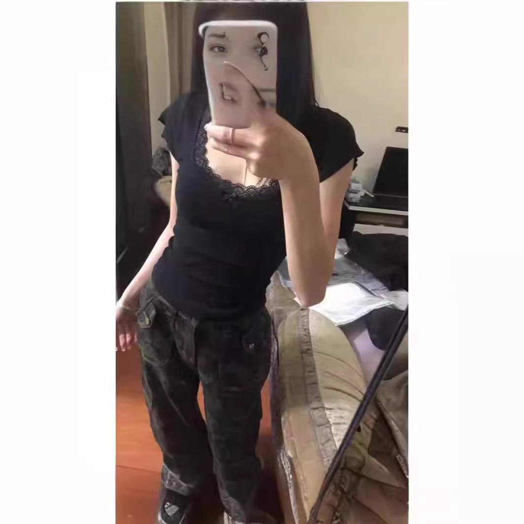 纯欲蕾丝花边锁骨方领短袖t恤女夏季甜辣妹蝴蝶结芭蕾风紧身上衣