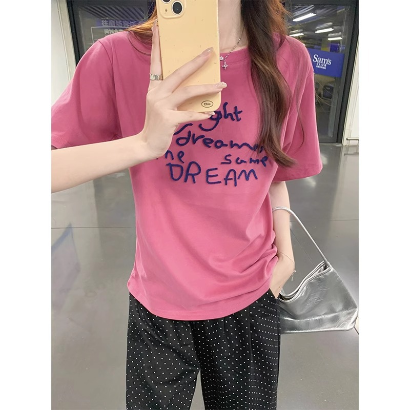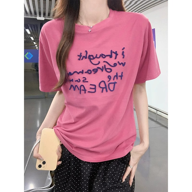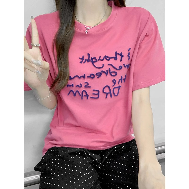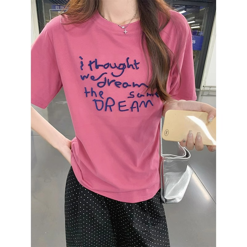 圆领火龙果正肩短袖t恤女美式字母宽松显瘦慵懒休闲百搭夏季上衣