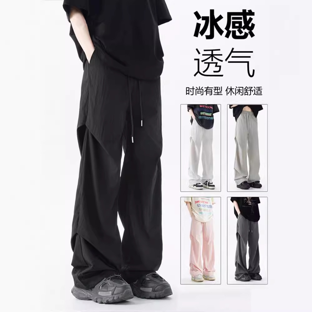 冰丝凉感工装伞兵裤男夏季新款潮牌垂感宽松薄款直筒裤休闲裤