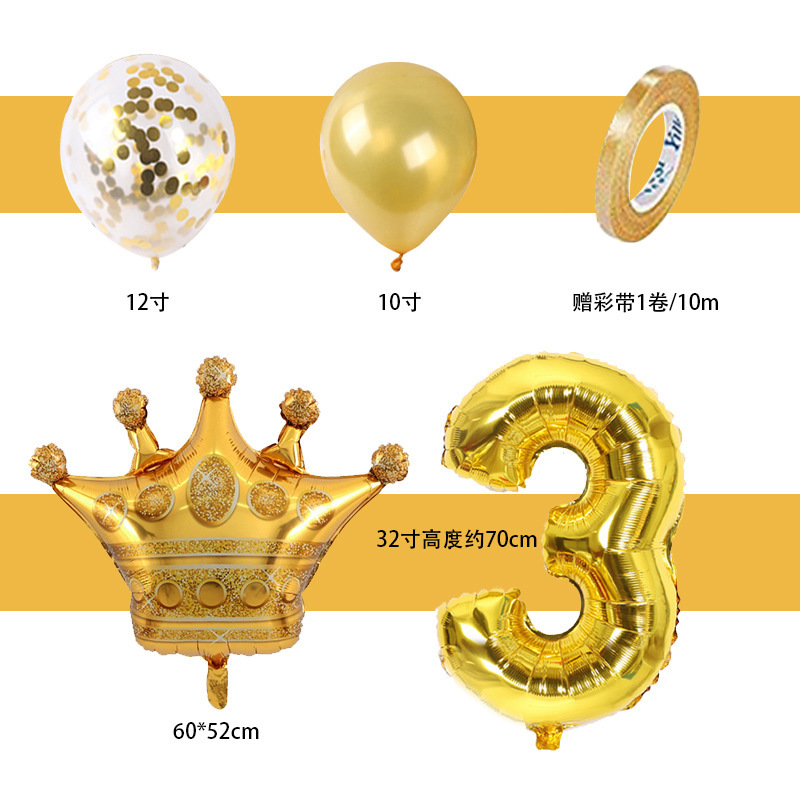 生日宝宝儿童皇冠铝膜数字气球束套装婚礼场景装饰布置品