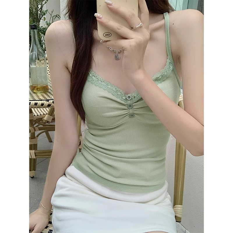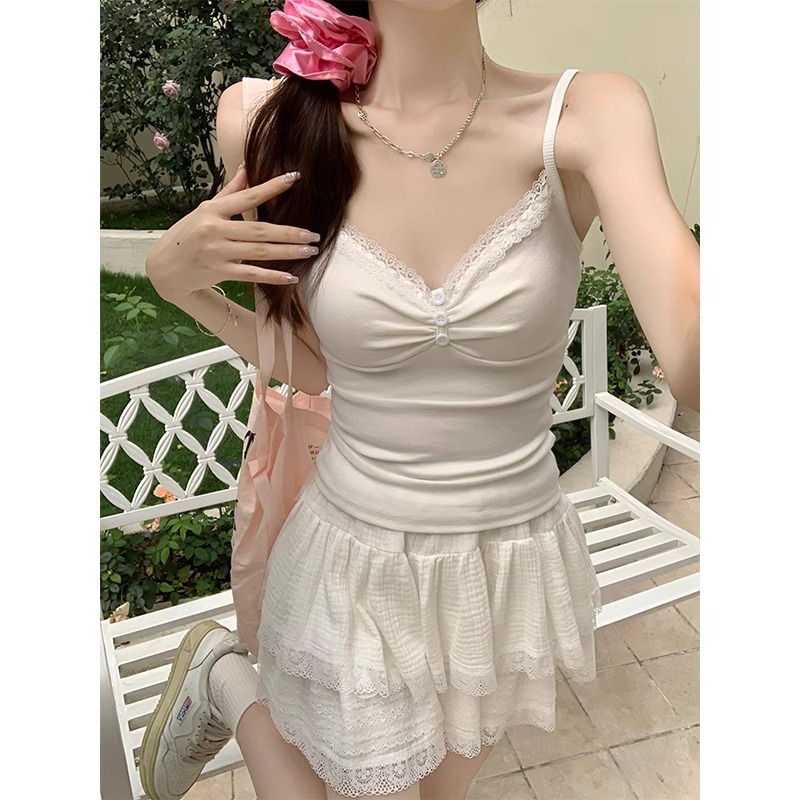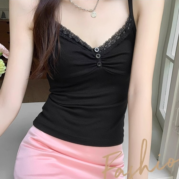 v领黑色蕾丝性感小吊带背心女bm辣妹高腰显瘦遮副乳无袖夏季上衣