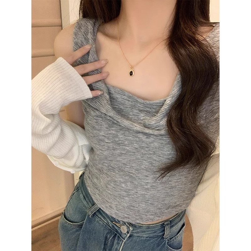 法式方领无袖褶皱吊带背心女春季设计感纯欲辣妹修身别致外穿上衣