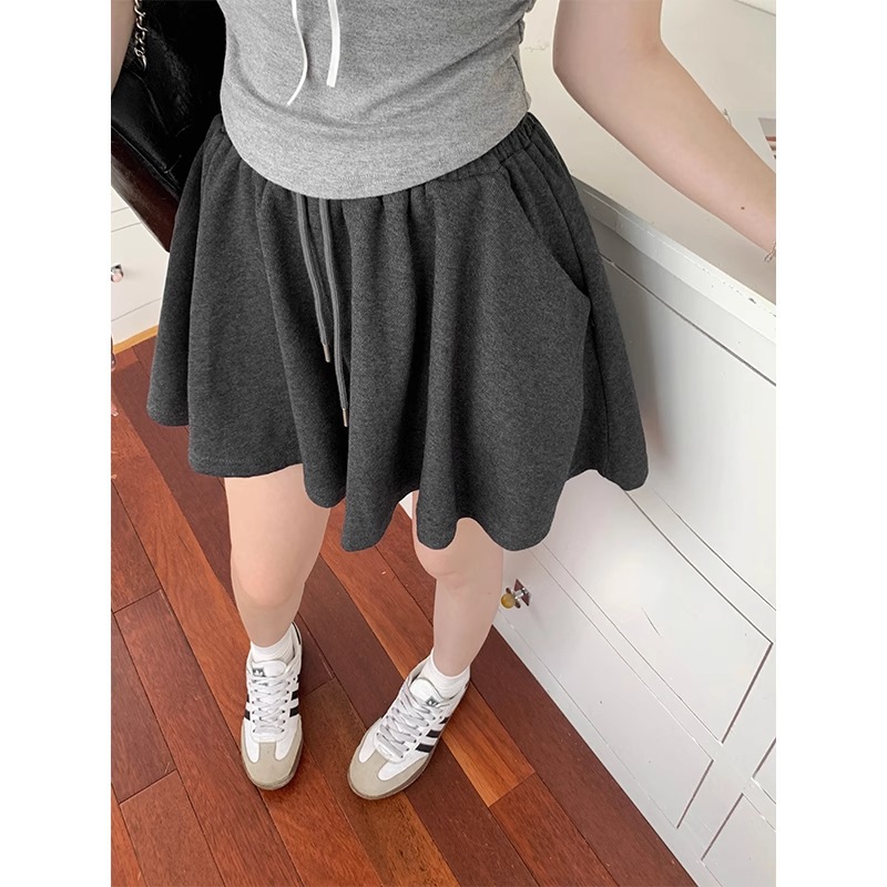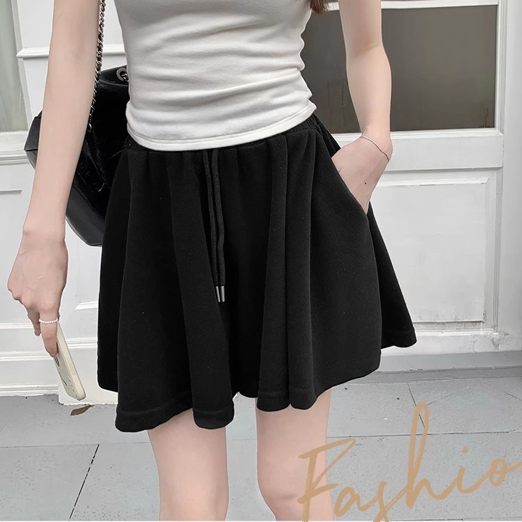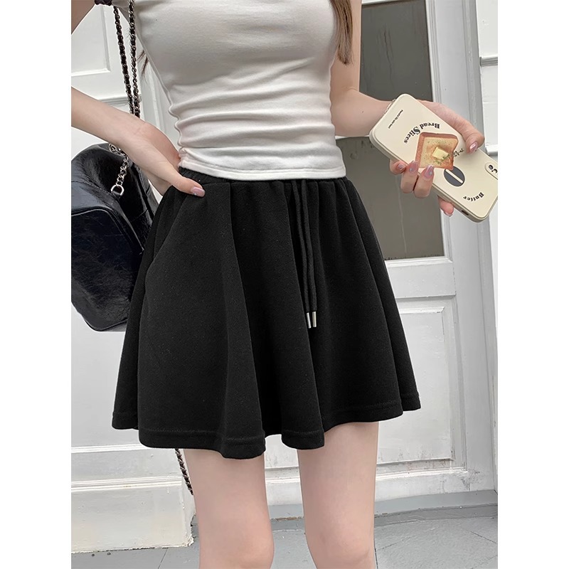 芭蕾风黑色松紧腰休闲运动短裤女夏季小个子宽松遮肉显瘦a字裤裙