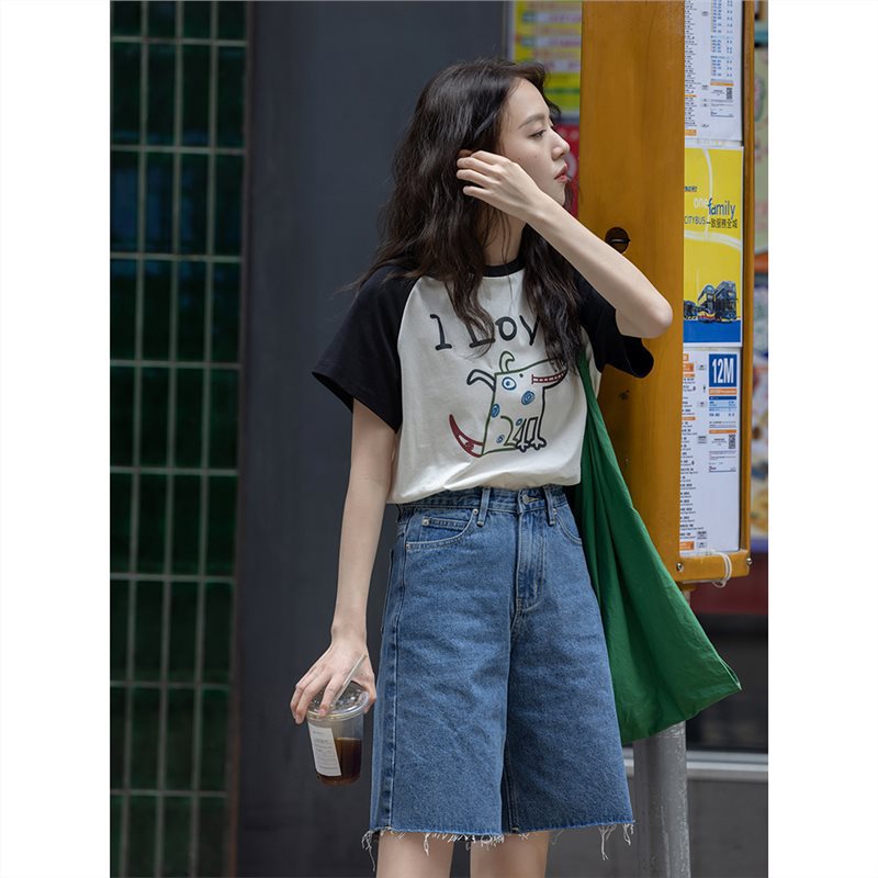 插肩短袖正肩t恤女夏显瘦内搭上衣设计感小众美式复古小个子