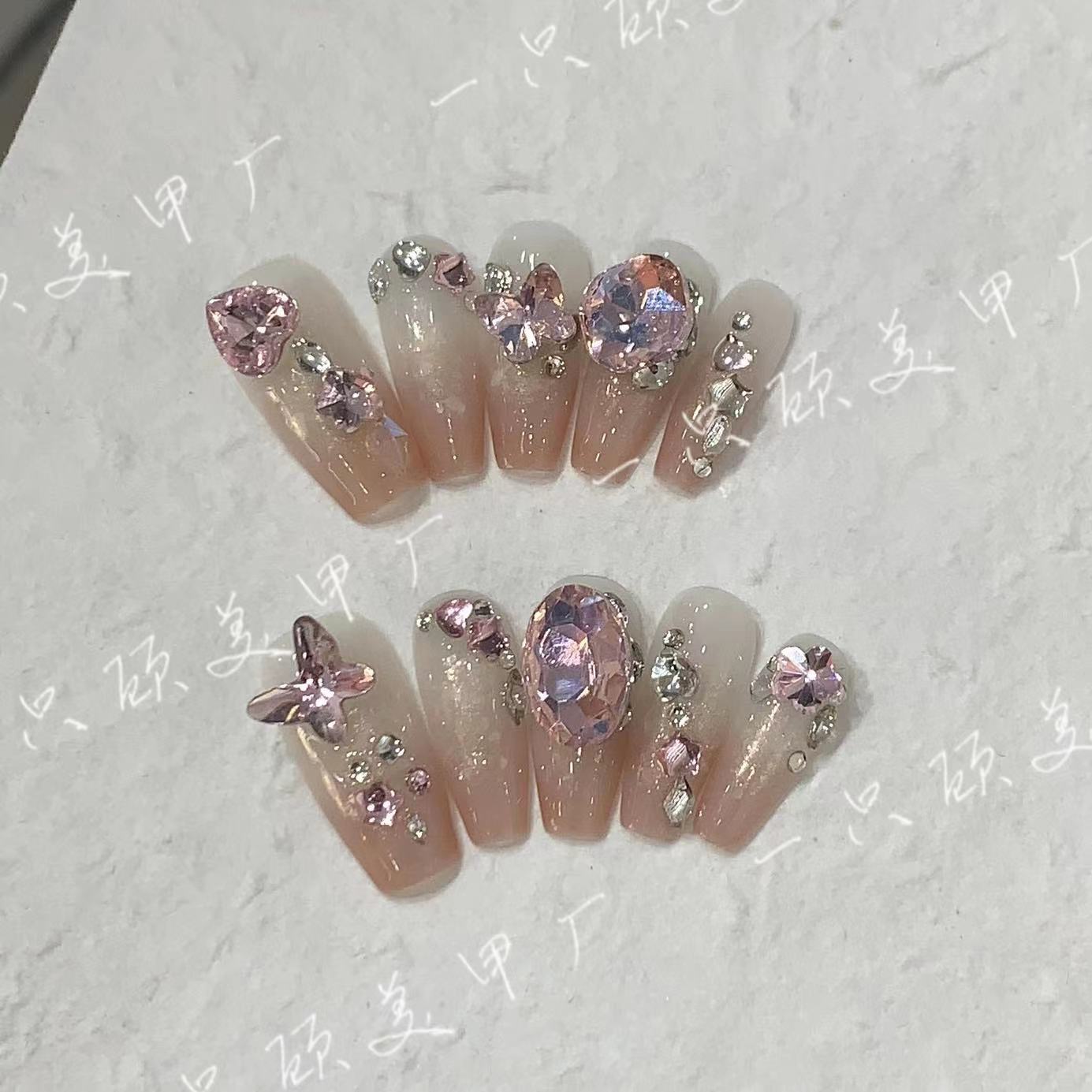 一只顾美甲厂【Y】【原创实拍】细节多层次欧泊晕染渐变粉钻初恋