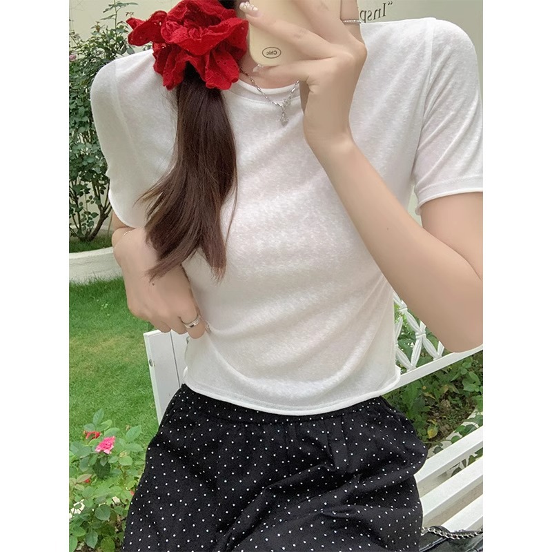 甜辣妹圆领修身显瘦短款正肩短袖t恤女设计感小众休闲半袖上衣夏