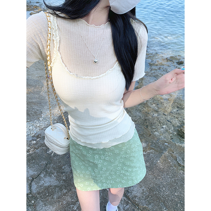 纯欲蕾丝花边小吊带遮副乳防走光外穿甜辣妹背心女夏修身短款上衣