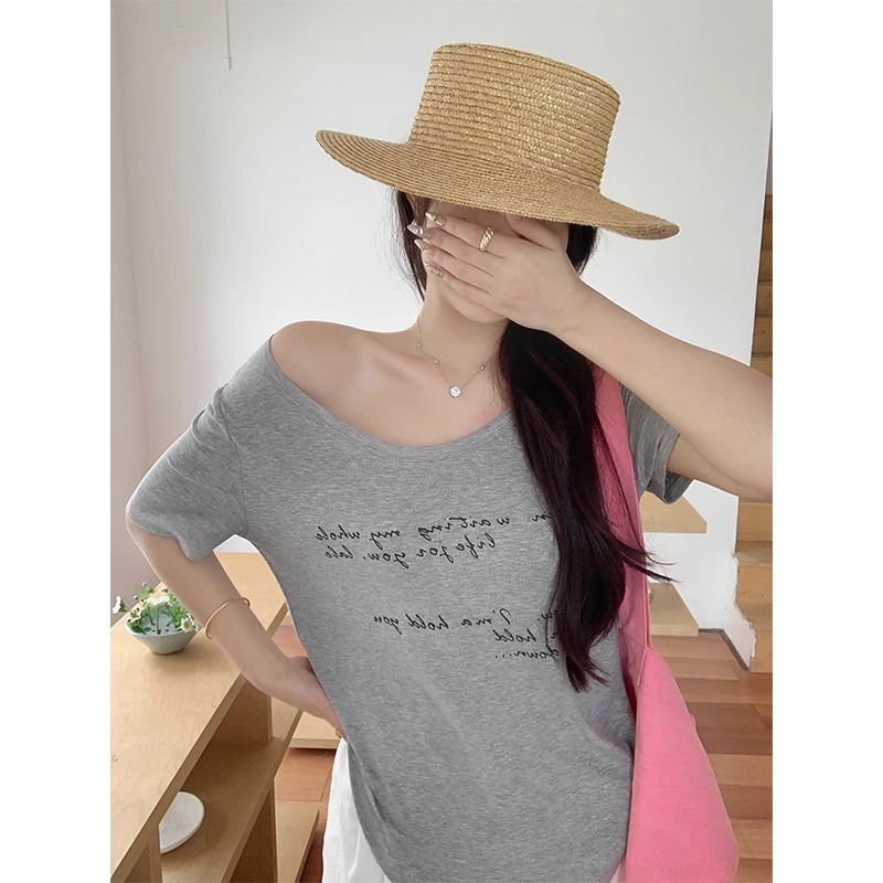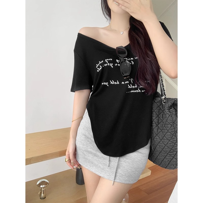 美式复古字母印花短袖T恤女夏季新款宽松遮肉慵懒风半袖上衣