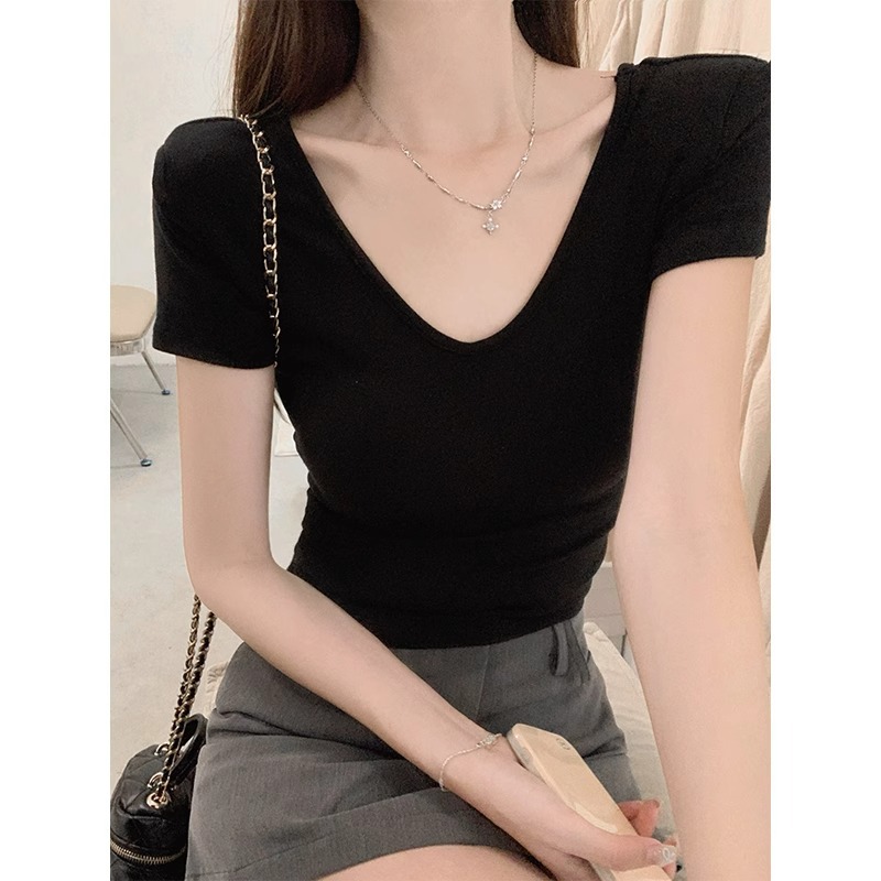 夏季新款紧身性感短袖T恤女简约日常时尚百搭小个子短款上衣