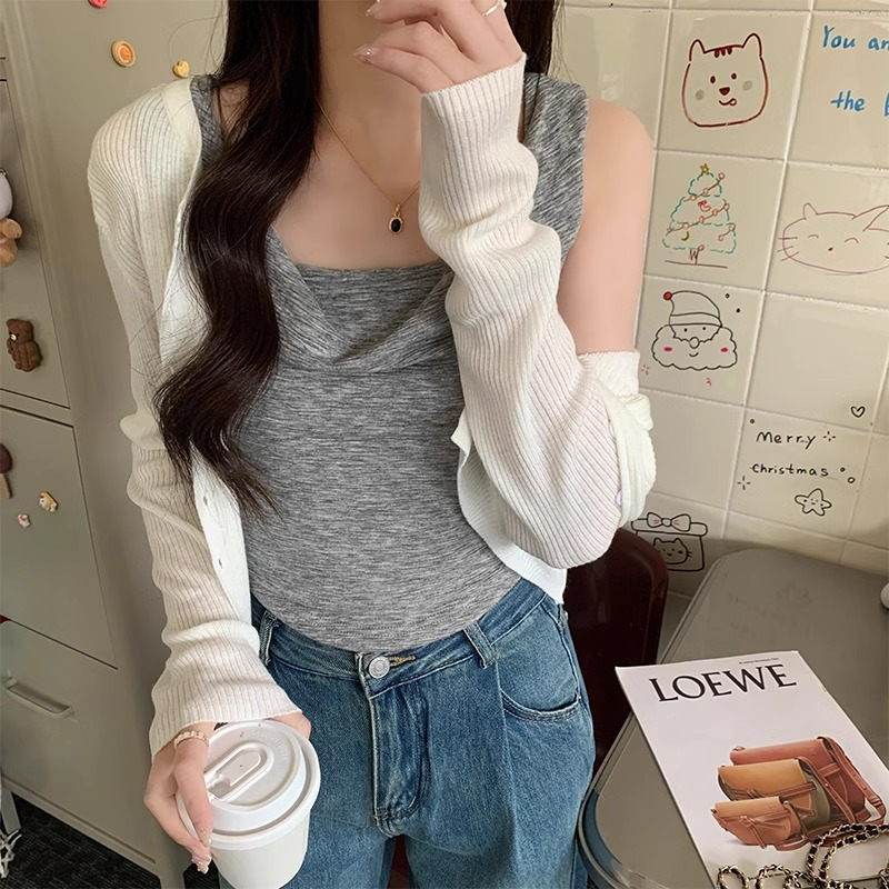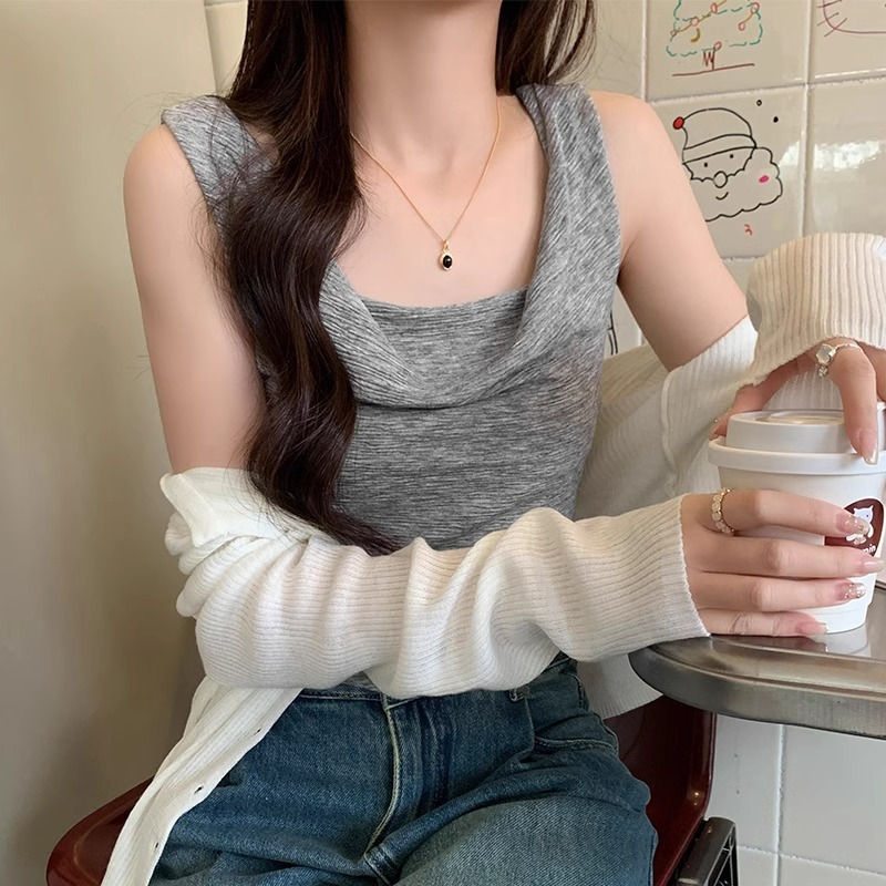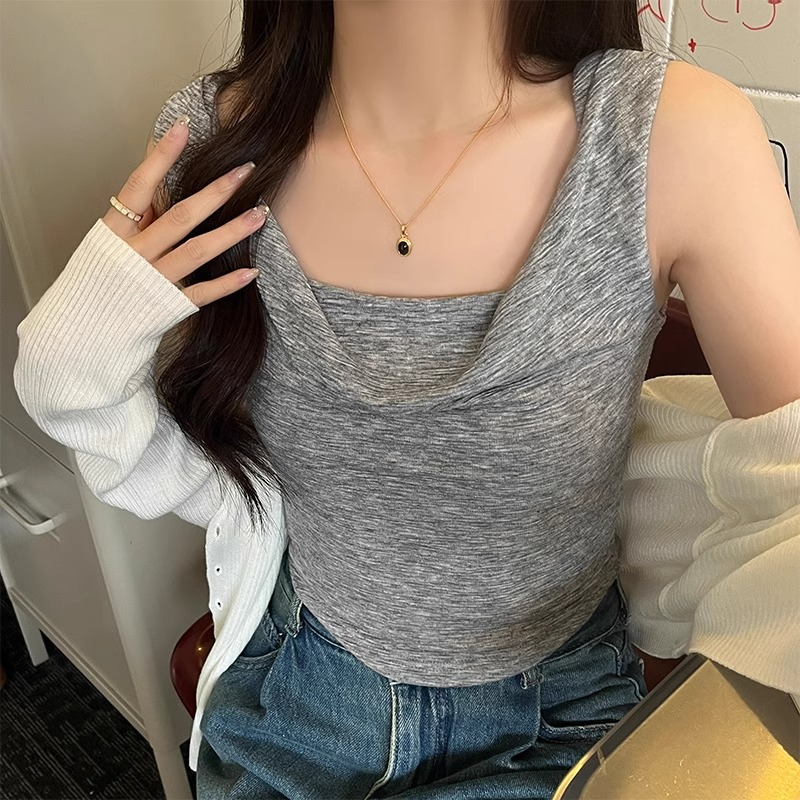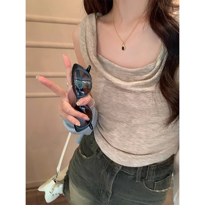 小吊带背心女外穿设计感内搭褶皱荡领纯欲辣妹修身不规则无袖上衣