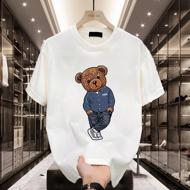小熊印花短袖t恤男生夏季青少年潮流帅气上衣学生百搭时尚圆领T恤