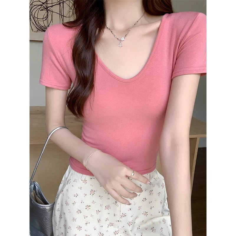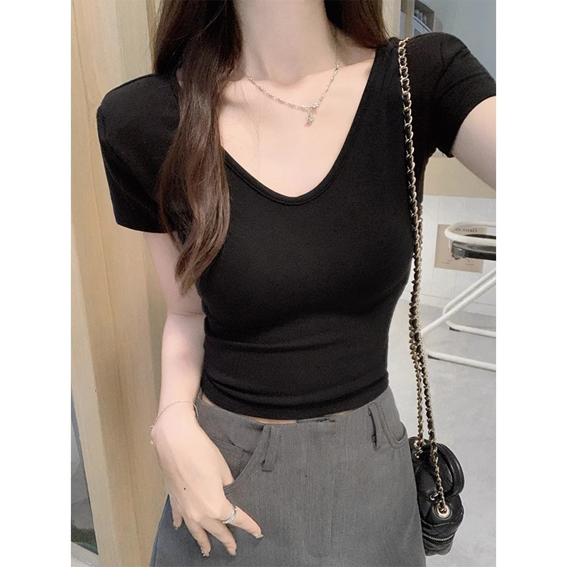 辣妹纯欲修身短袖T恤女夏季新款低领收腰显瘦时尚气质百搭短上衣