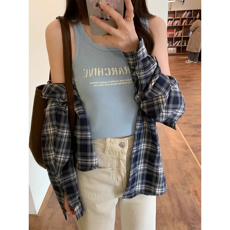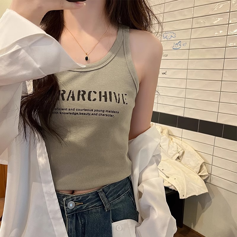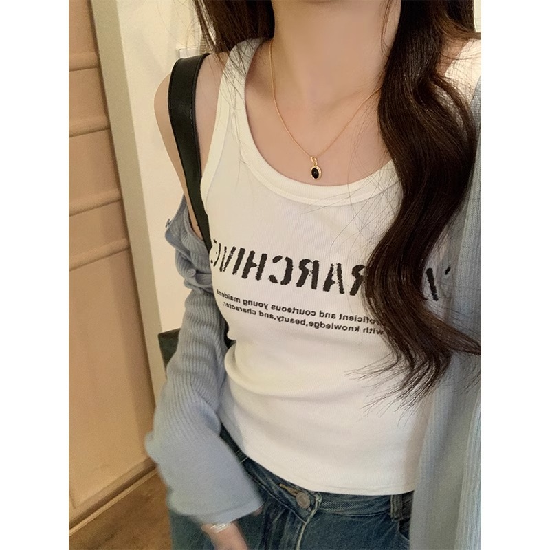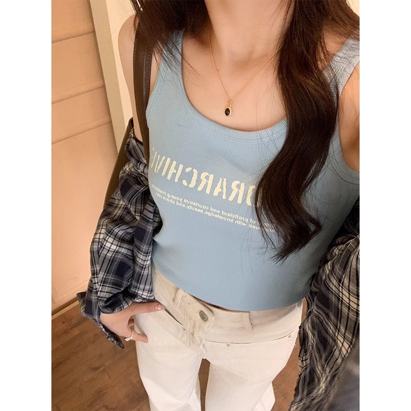 螺纹吊带小背心女春夏u领美式复古遮副乳无袖外穿纯欲打底小上衣