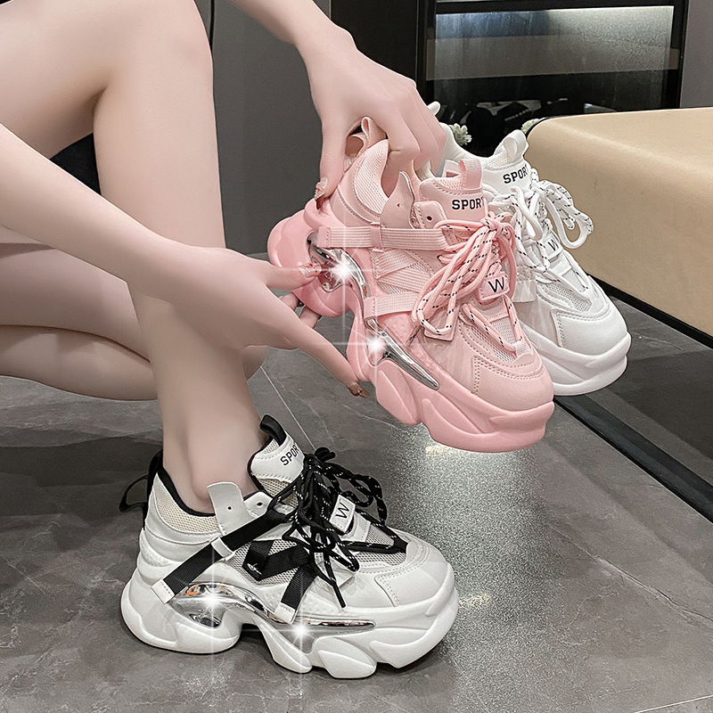 增高老爹鞋女2025年春季新款网面透气厚底百搭小个子休闲运动临馨