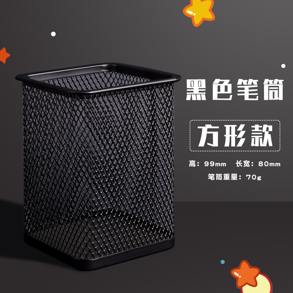 金属笔筒圆形办公室桌面收纳大号多功能大容量黑色方形笔筒