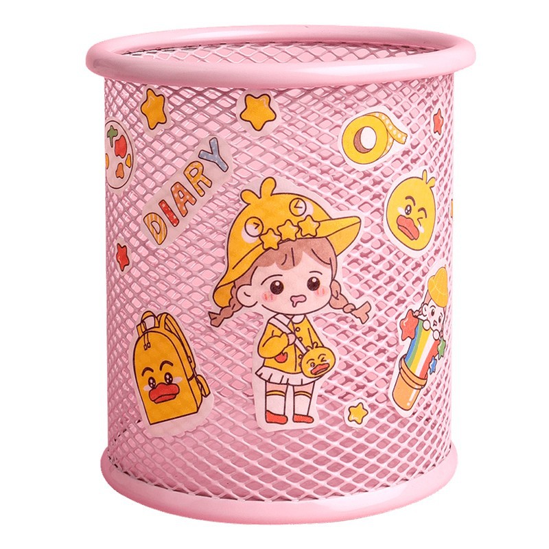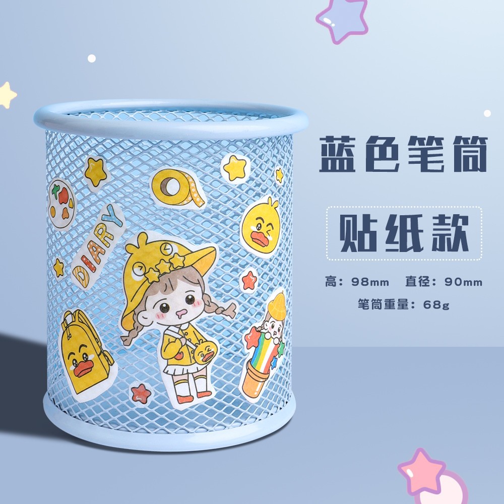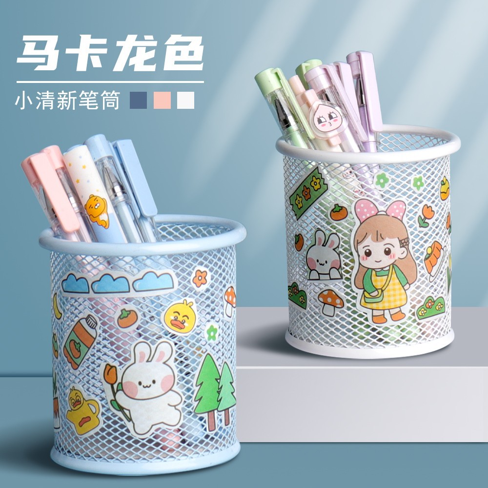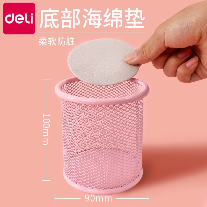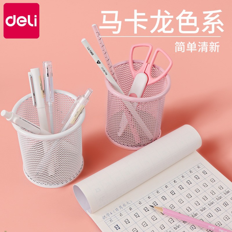 得力9153笔筒大容量学生桌面圆形金属铁艺笔筒收纳盒创意ins