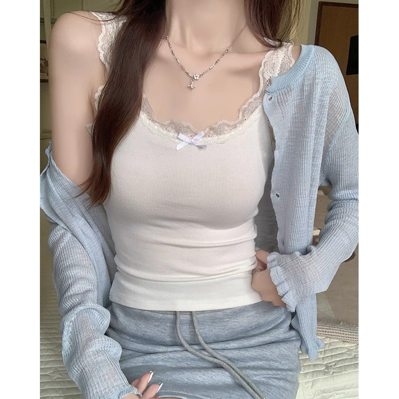 白色蕾丝花边吊带背心女内搭新款夏外穿纯欲辣妹短款无袖上衣